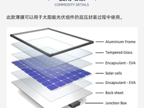 光伏電池封裝膠膜(EVA)一種熱固性有粘性的膠膜,用于放在夾膠玻璃中間(EVA是Ethylene乙烯 Vinyl乙烯基Acetate醋酸鹽的簡稱)。由于EVA膠膜在粘著力、耐久性、光學特性等...